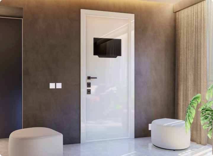 - Это умная дверь которая оснащена встроенным монитором, позволяющим вам видеть, кто находится за дверью, не открывая ее. Вы можете общаться с посетителем, не выходя из дома, и даже открыть дверь удаленно.
