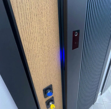 Дверь имеет выдвижную систему быстрого обслуживания, которая позволяет производить блочную замену компонентов и апгрейд без демонтажа двери или панелей. Также доступна опция подключения HD камеры для видеозвонков и видеонаблюдения. Устройство работает на базе свежего Андроид, что позволяет устанавливать все необходимые программы. Мы учли все требования по электро-безопасности внутри двери, установили специальные кабелепроходы для проводки и закрепили все компоненты прочно.