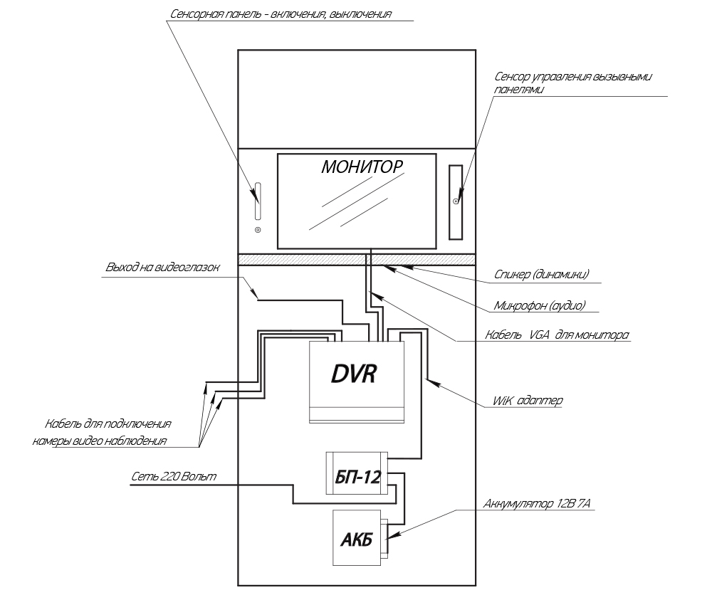 • Коммуникации для подключения от 1-й до 4-х видеокамер.